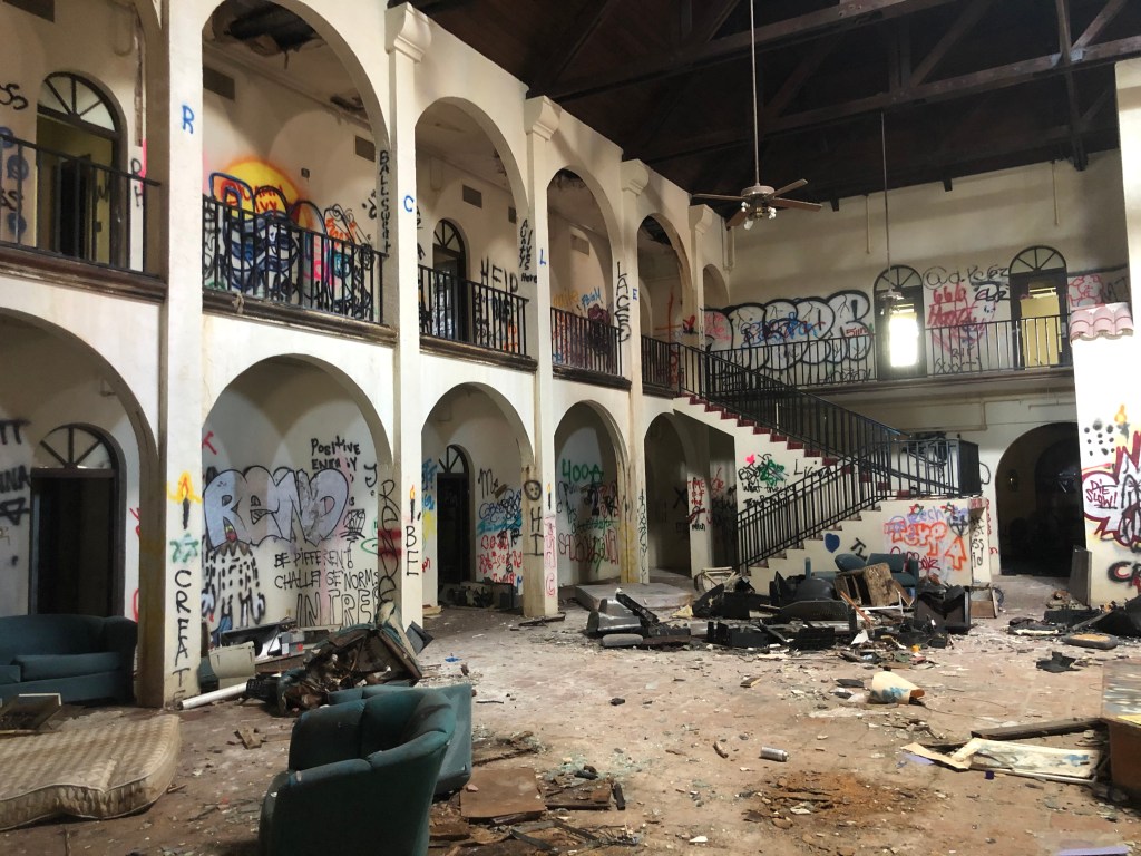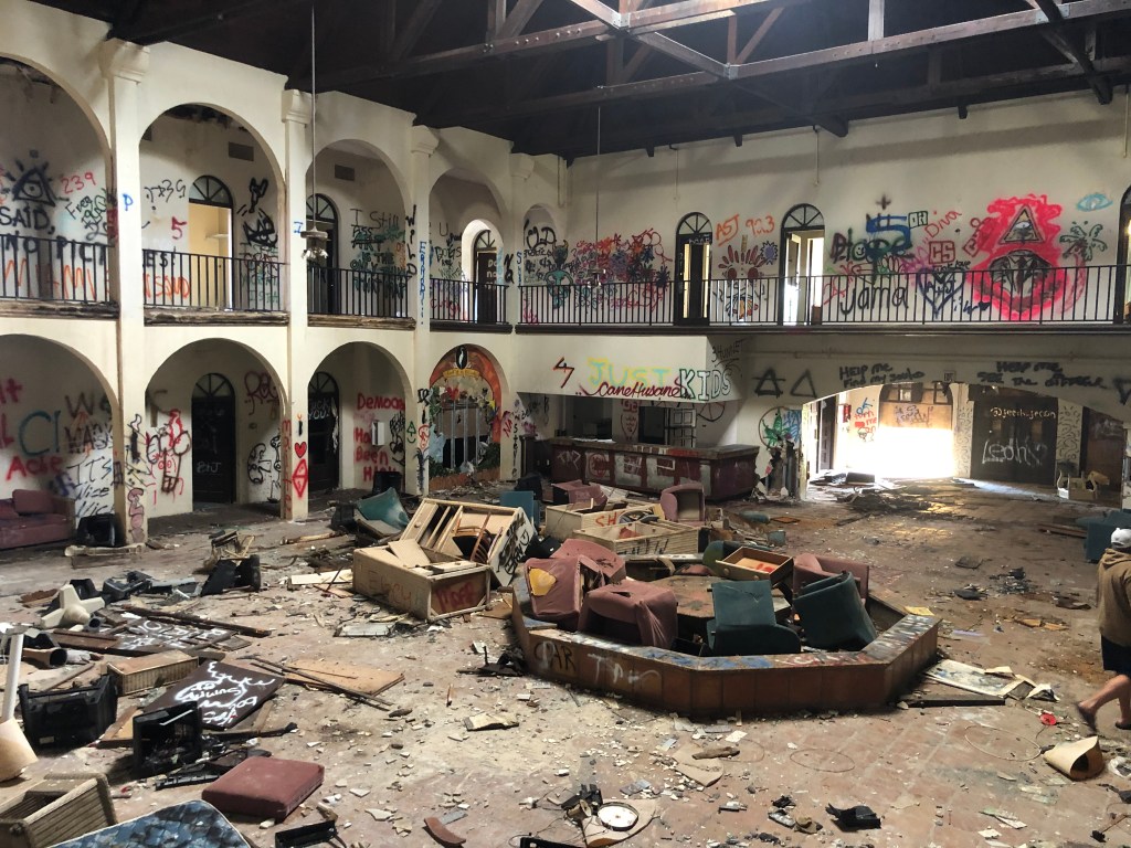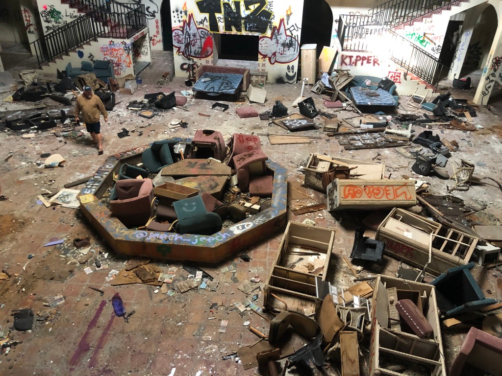 White, who works at the Adventure Resort’s front desk, used to shoo away what she called the “drunks and pill-heads” who lived long-term at the Hotel and occasionally wandered over to the Adventure Resort to use its pristine pool.