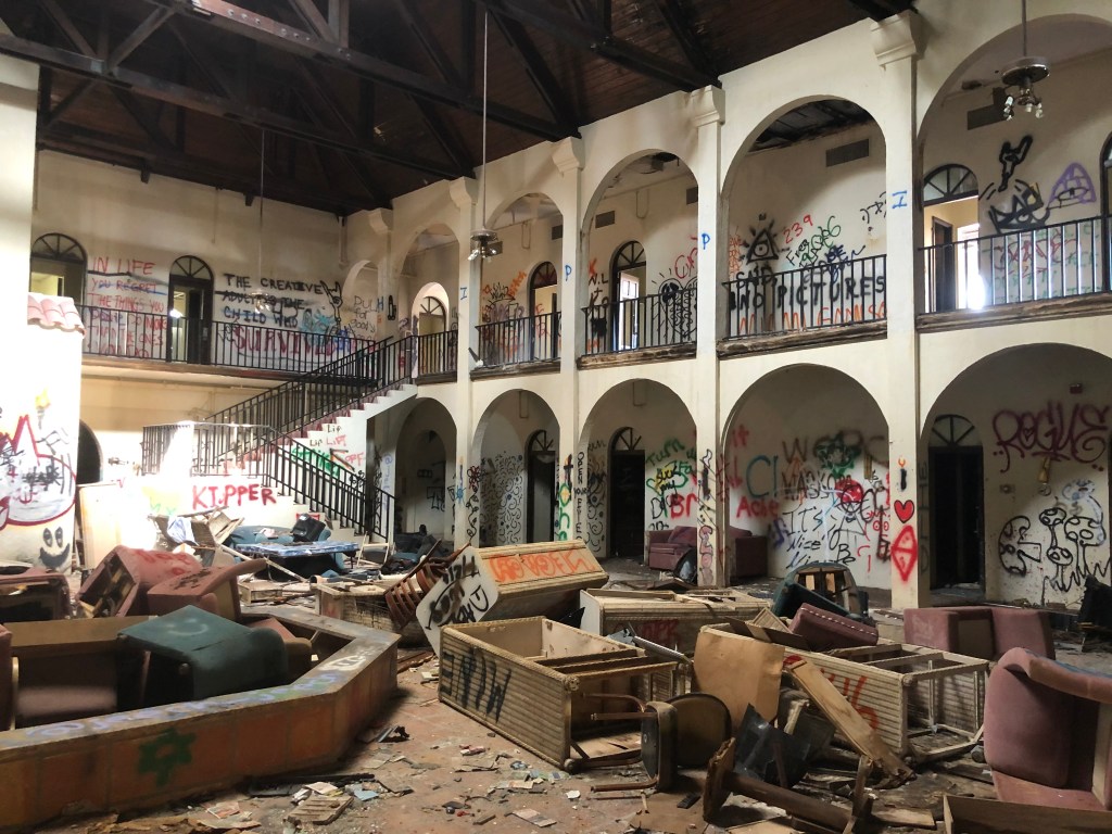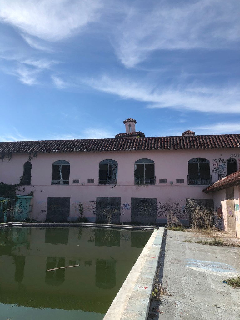 Visit the post from 2018 on abandondedfl.com to read about the history of the hotel and the Golden Gate Estates development just east of Naples, Florida. A 2013 article from the Naples Daily News includes interviews from staff in the closing days of the hotel.