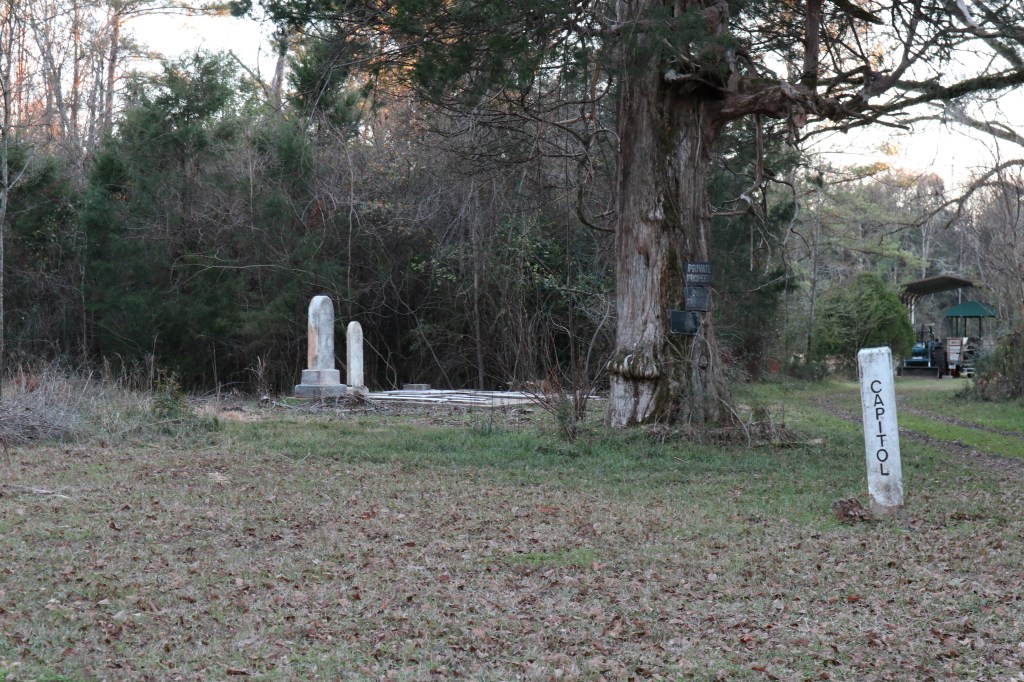 Capitol Avenue, 1st Street, 2nd Street, Oak Street and Vine Street all remain in the original positions, marked by white sign posts at each intersection. The ruins of the city of Cahaba are scattered throughout the grid.