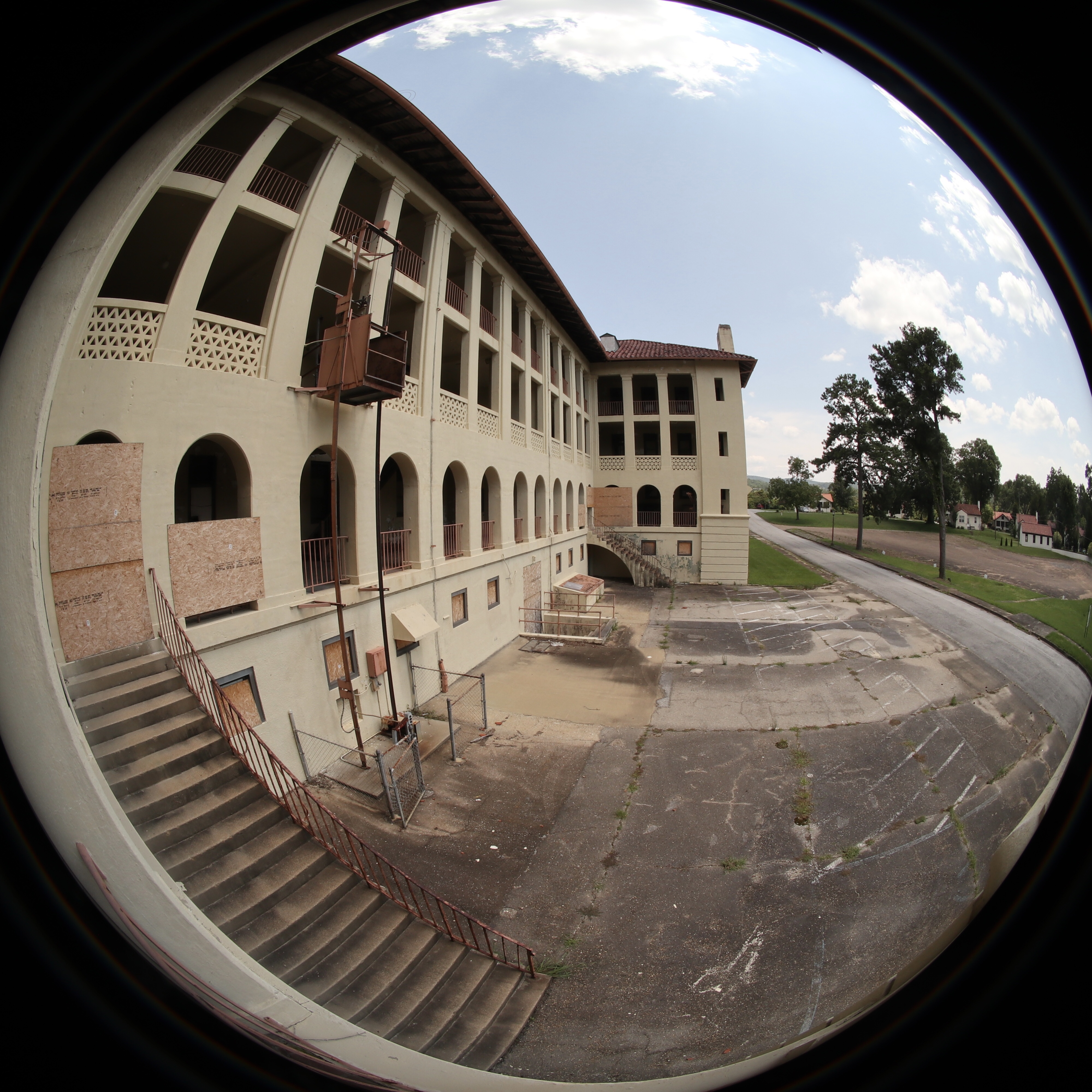 Not much has changed since the first time I visited Fort McClellan in January 2020 (click here to see that post with history on Fort McClellan and more photos). They boarded up the first floor of the four original barrack buildings although 2 of them have already been made easily accessible.